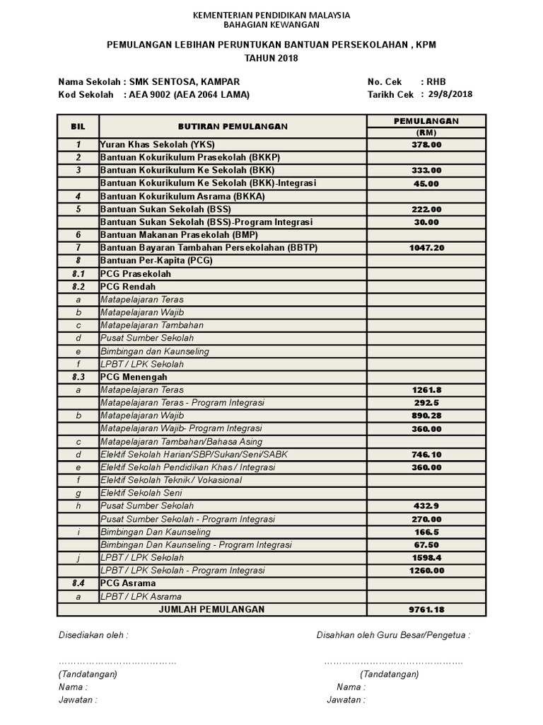 BORANG PEMULANGAN LEBIHAN PERUNTUKAN BANTUAN BAYARAN TAMBAHAN PERSEKOLAHAN BAHAGIAN I. Mingtee6311 menerbitkan Garis Panduan Pengurusan Kewangan Peruntukan Bantuan Persekolahan pada 2021-10-13. Mesyuarat memutuskan bahawa permohonan muridpelajar di atas diluluskan bagi bantuan berikut tandakan.